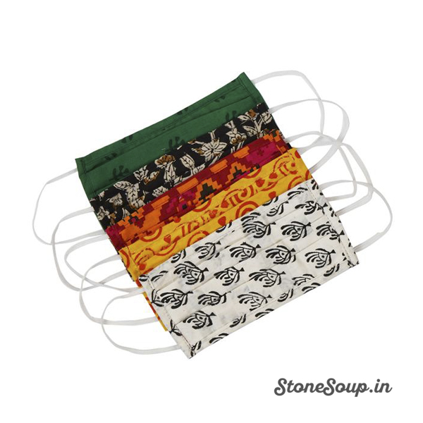 Stonesoup Chanderi Cloth Face Masks – Elastic (set of 5) – Adult